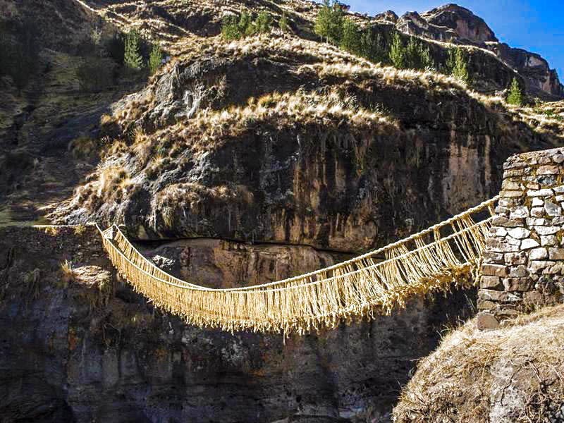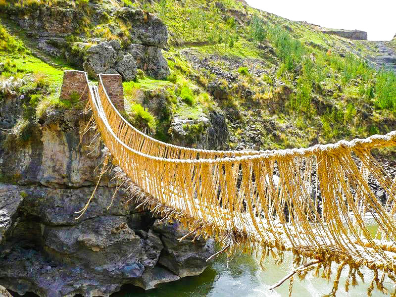 El tour puente inca de qeswachaka. le ofrecfe una gran red de caminos, principalmente llamado Qhapaq Ñan, estos unían los territorios del Imperio Inca para atravesar la accidentada geografía de los andes, se construyeron Puentes Colgantes hechos de fibras vegetales, esta compleja tecnología se ha transmitido de generación en generación y existe un único puente que se ha renovado anualmente hasta el día de hoy por más de 500 años uniendo el pasado con el futuro.